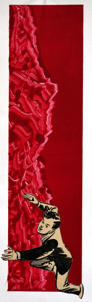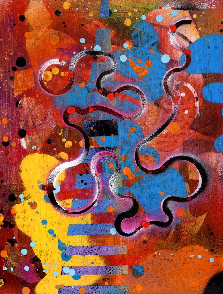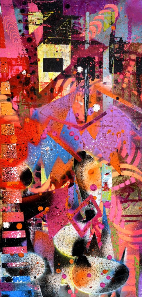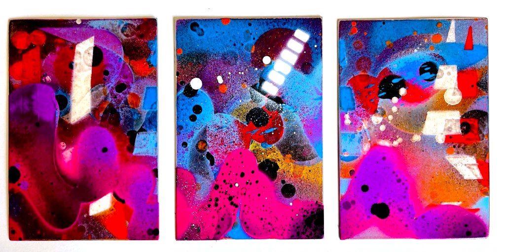 My abstract works allow me to escape the constraints of structure and planning, and instead allow the processes and materials to shape the final result. I use a wide range of materials and techniques, always striving to incorporate recycled and sustainable materials wherever possible. The beauty of this aspect of my practice is that it’s hard to pin down exactly what I produce – and that’s the whole point. By embracing spontaneity, I’m able to push my boundaries in terms of colour use and composition.